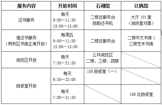 根据学校《关于2025-2026学年寒假安排的通知》精神,2026年1月19日—20日两天图书馆书库、阅览室、自修室等开展内务整理,暂停开放。期间如需还书服务的读者,可通过自助借还机进行还书操作。