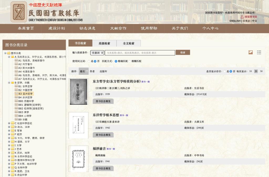 “民国图书数据库”是“中国历史文献总库”的子库,由国家图书馆出版社开发。本数据库收录了国家图书馆和其他图书馆、档案馆、纪念馆的丰富文献资源,全面反映民国时期文献出版状况。我校已挑选3000种图书。