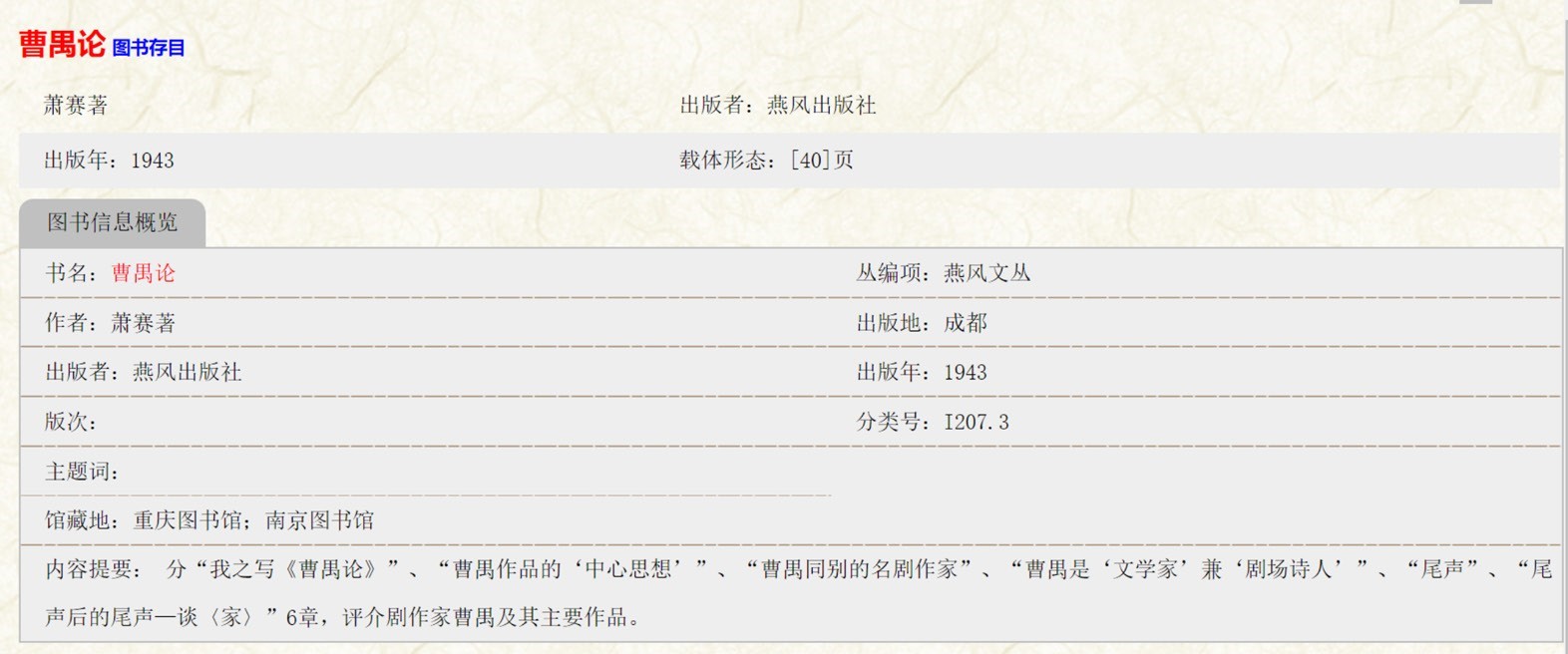 提供任意词、书名、作者、出版者、出版年、出版地、关键词等检索,同时具备高级检索功能,用户可以进行多种方式组合检索